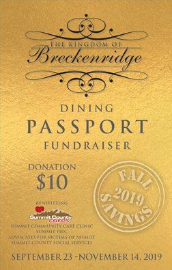 FALL 2019 DINING PASSPORTS ARE OUT! They are valid September 23 through November 14, 2019. All proceeds benefit Summit County Cares, including the Summit Community Cares Clinic, FIRC, Advocates for Victims of Assault and Social Services.